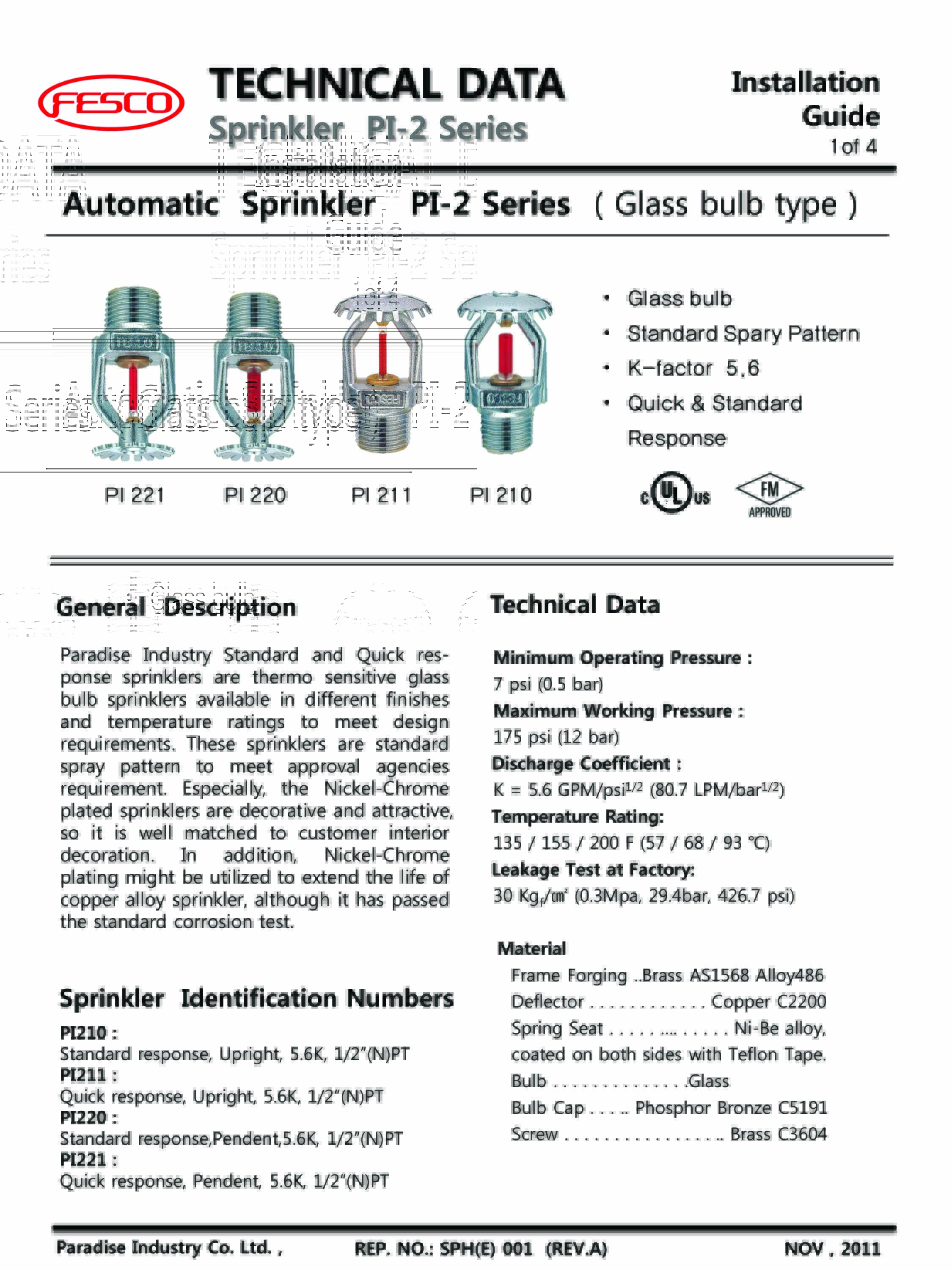 FESCO Pendent Quick Response Sprinkler
