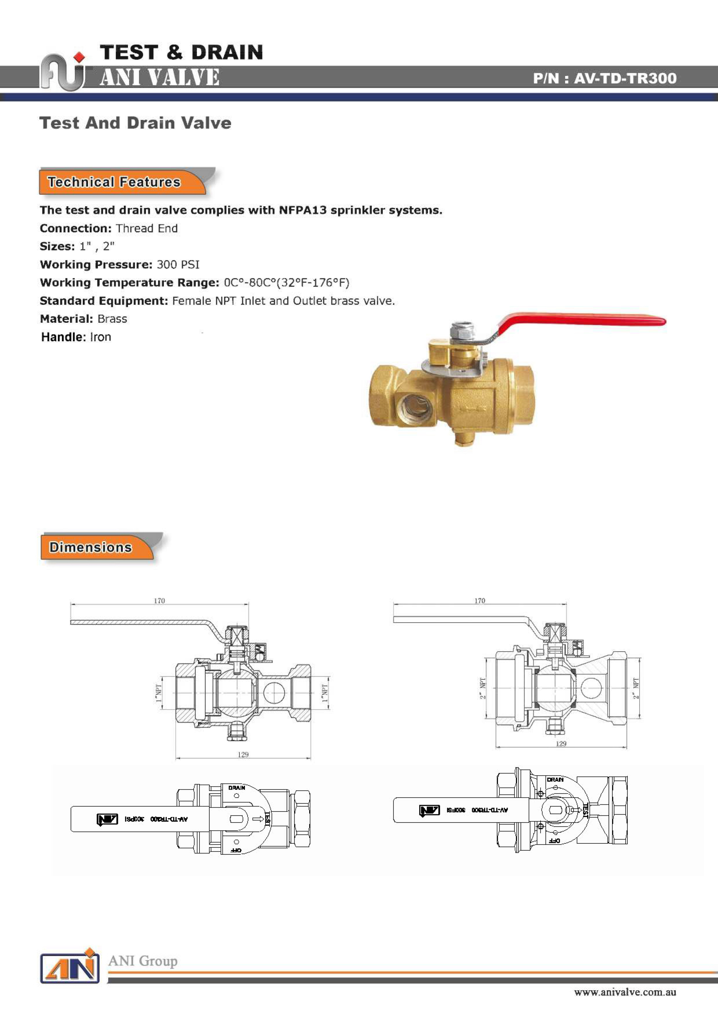 شیر تست و تخلیه آتش نشانی سایز 2 اینچ ANI VALVE